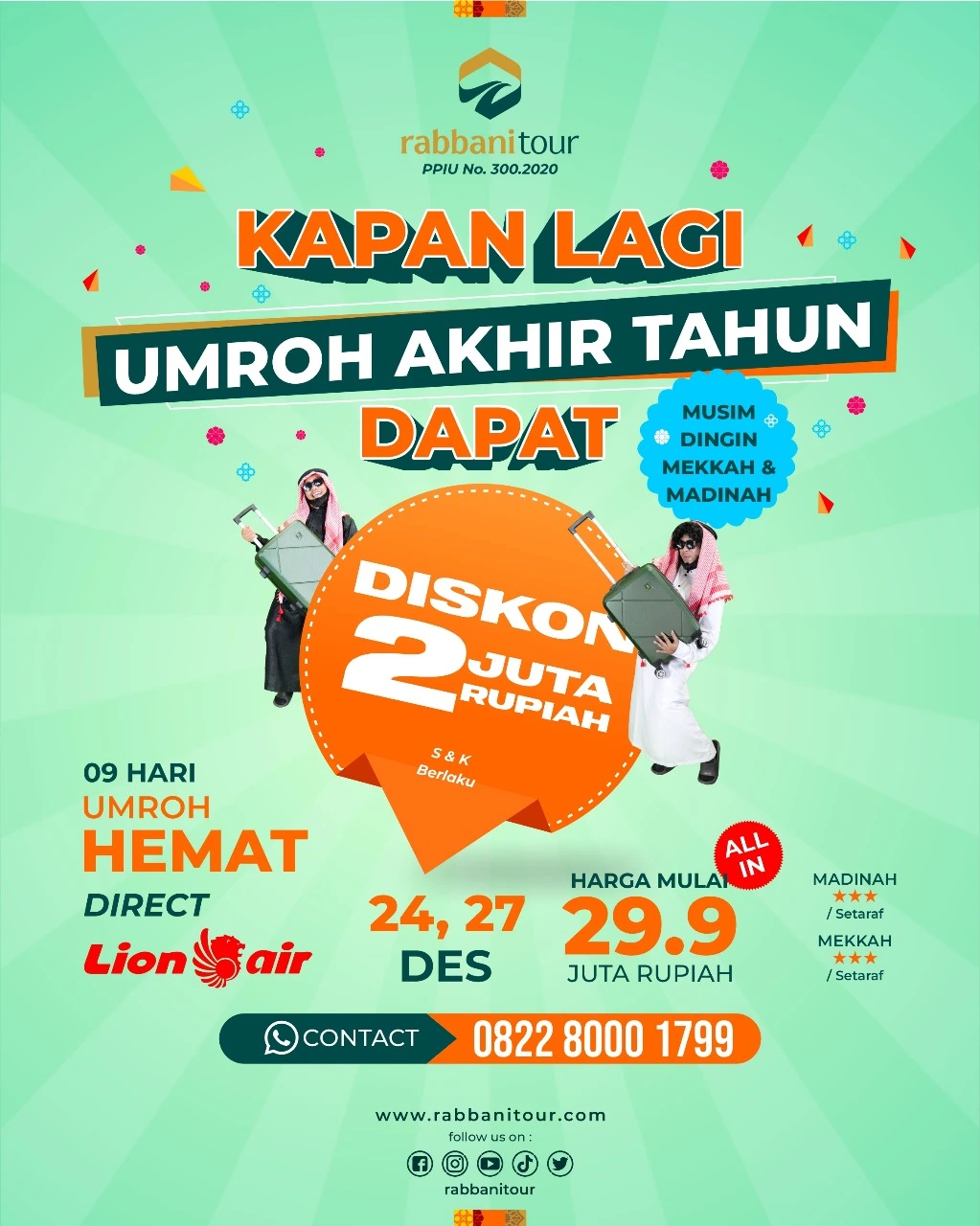 Kami selalu menawarkan harga terbaik dengan fasilitas maksimal yang bisa diberikan, masih banyak promo lainnya untuk potongan harga menarik dari Rabbanitour.
